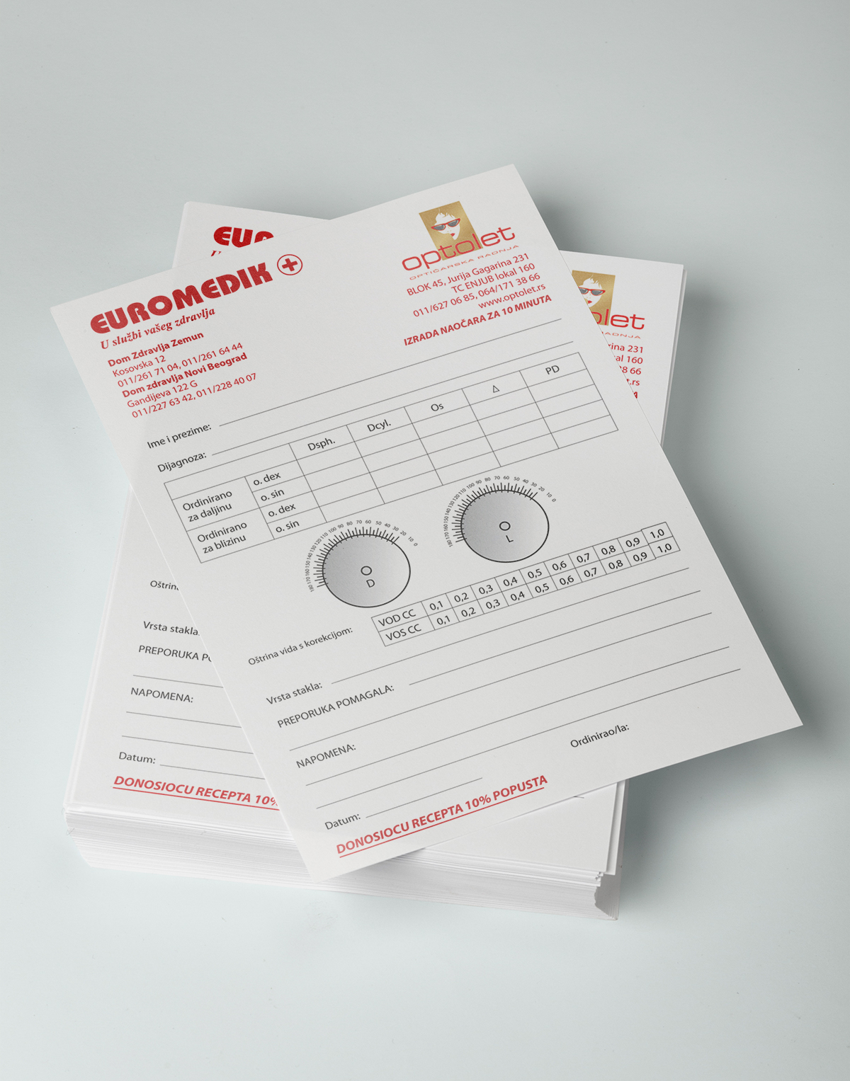 Dostupne su opcije jednostrane i obostrane štampe, omogućavajući vam da maksimalno iskoristite prostor na papiru. Sa kapacitetom tiraža koji se kreće od 100 do 50000 primeraka i brzim rokom isporuke od samo 1 do 7 dana, uvek smo spremni da podržimo dinamiku vašeg poslovanja. Oslonite se na nas za visokokvalitetne recepte koji će doprineti efikasnosti i profesionalnosti vaše prakse.